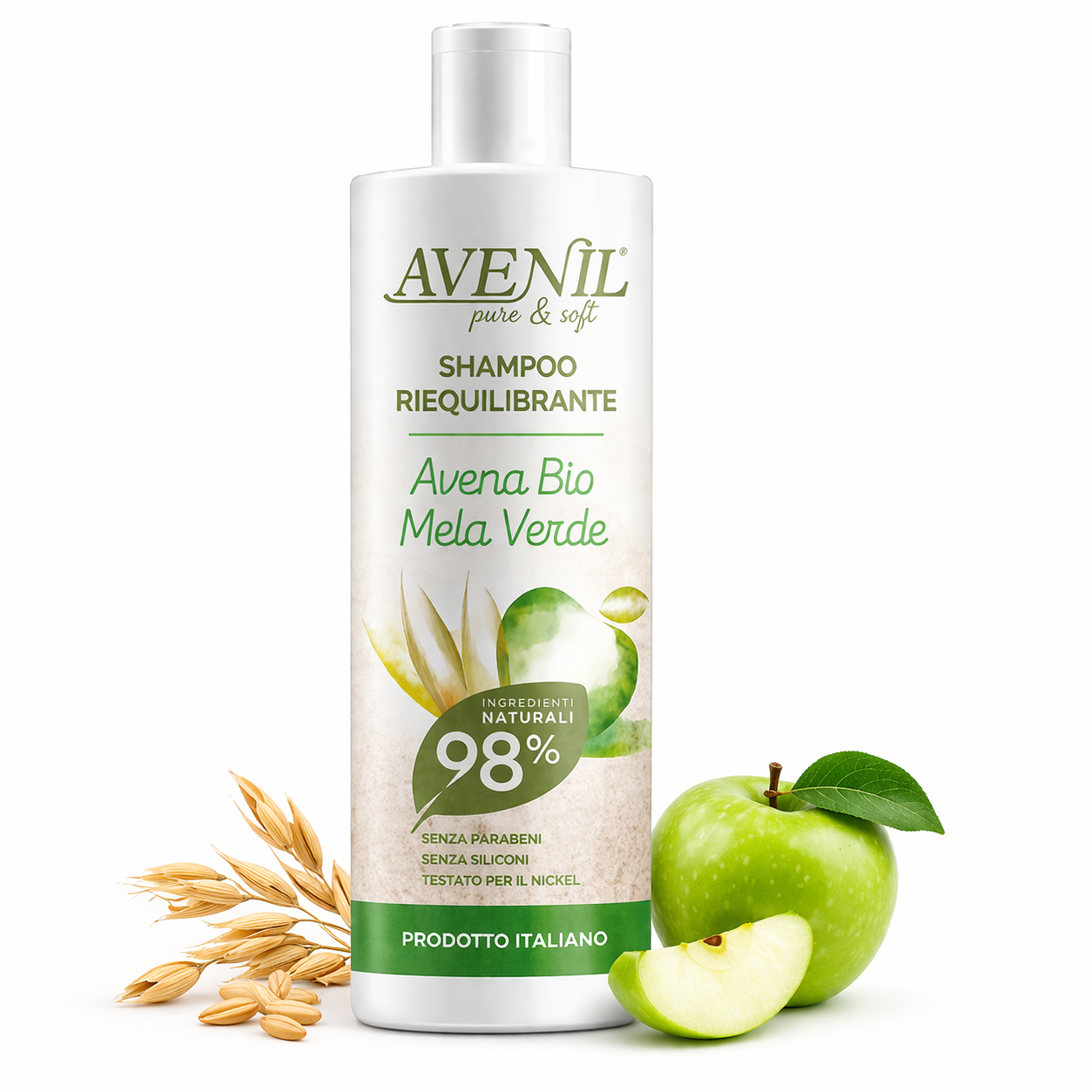 Doprajte svojim vlasom sviežosť, rovnováhu a prirodzenú krásu s Avenil Pure & Soft Shampoo Riequilibrante. Tento jemný šampón s obsahom bio ovsa a extraktu zo zeleného jablka je navrhnutý tak, aby obnovil prirodzenú rovnováhu vlasov a pokožky hlavy.